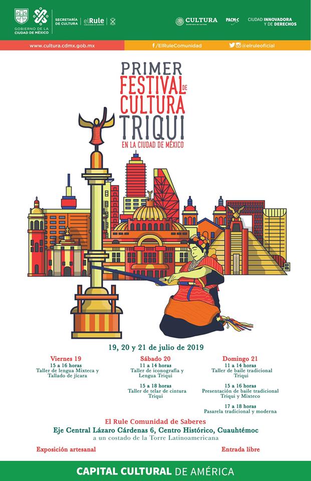 “Primer Festival de Cultura Triqui en la Ciudad de México” se llevara a cabo los días 19, 20 y 21 de julio en el Centro Cultural EL Rule (a un costado de la Torre Latinoamericana). Entrada libre.