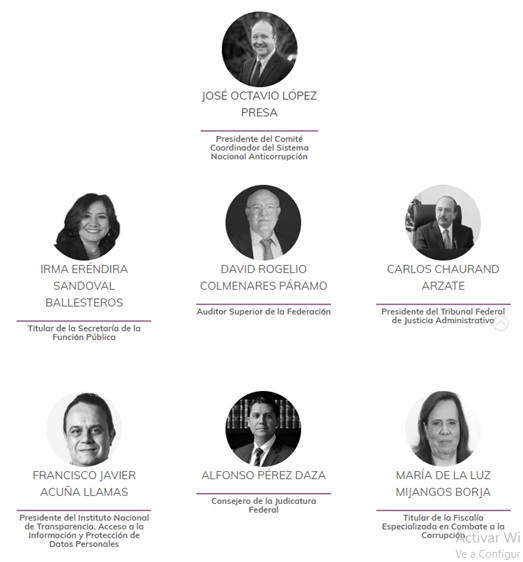 Organigrama del Comité Coordinador del SNA publicado en la página web del Sistema Nacional Anticorrupción